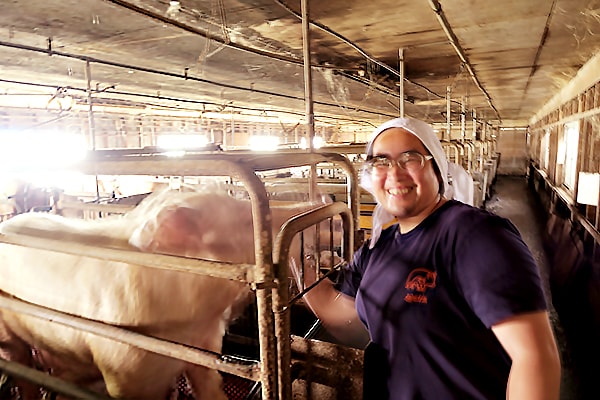 飯田養豚は東庄で40年以上の歴史を持つ養豚場です。組合で唯一小さい頃から養豚に携わっていらっしゃる奥さんと優しいご主人で、協力し合いながら東庄の静かな環境で営まれています。元々奥さんのお父さんが営んでらっしゃった農場をお二人が養豚場として引き継がれたんだとか。ずっと小さい頃から豚がいる環境が普通だった奥さん。豚に対する思いもやっぱり特別です。