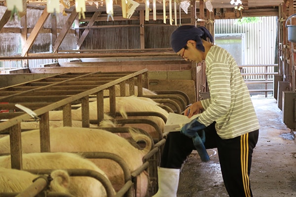 娘さんは21歳から手伝われていて養豚暦はもう10年以上だとか。今は小学6年生の女の子と4年生の男の子のお母さん。養豚との両立で大変そうですが、「豚が好きだから全く苦にならないし、大変な時ももちろんありますけど、案外楽しいんですよ」とこの日一番の笑顔で話してくださったのが印象的でした。